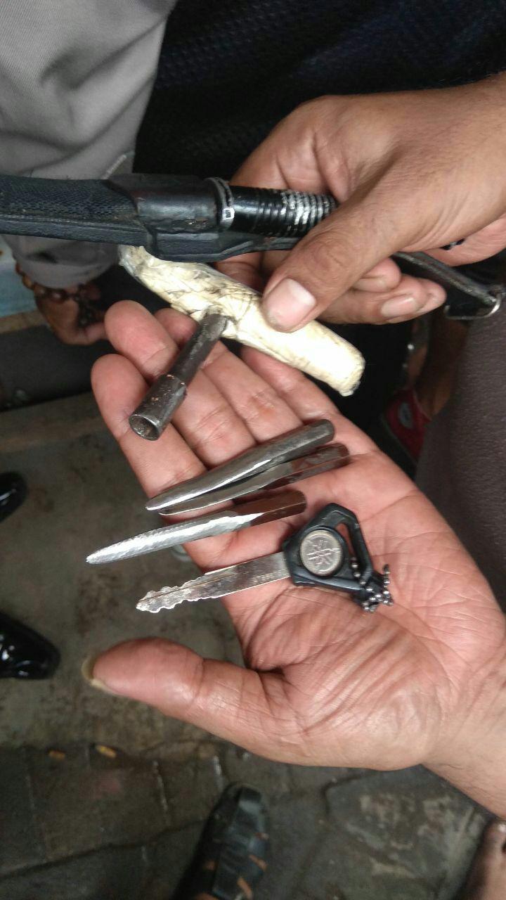 Dari tangan AY didapatkan barang bukti 1 buah kunci ” T “, 3 (tiga) buah anak mata kunci ” T “, 1 (satu) bilah sangkur,1 (satu) buah kunci sepeda motor Yamaha dan motor curian merk Yamaha Mio 125 warna merah.