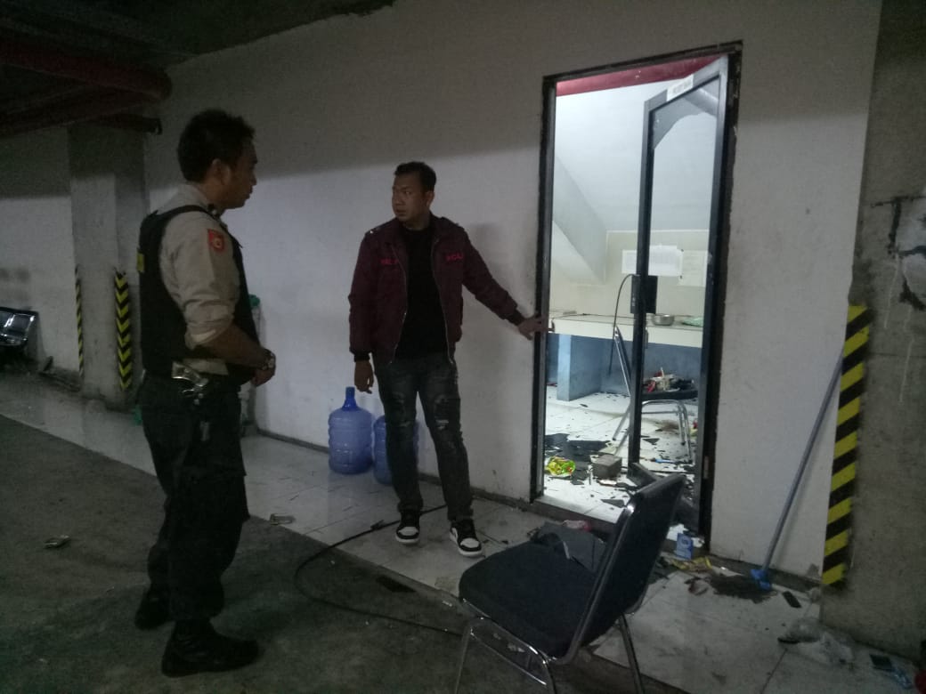 Akibat penyerangan tersebut, pos security mengalami kerusakan.