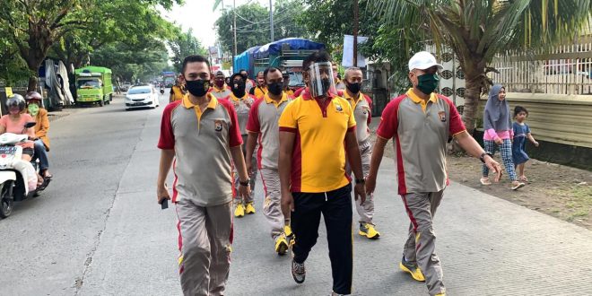 Makassar – Guna menjaga kebugaran tubuh yang prima serta meningkatkan imunitas dalam tubuh untuk menangkal penyebaran Covid-19, personel Polsek Tallo Polrestabes Makassar melaksanakan kegiatan olahraga jalan sehat dengan tetap memperhatikan social distancing dan selalu memakai masker, Jum’at (10/07/2020).