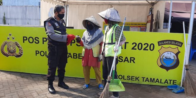 Polrestabesmakassar.com – Ditengah menjalani tugas di posko ops ketupat 2020 Aipda Jasmin Bhabinkantibmas Kel Bongaya berbagi Rejeki kepada petugas kebersihan di jalanan yang biasanya membersihkan di sekitar posko ketupat di Jln Metro Tanjung Bunga. Rabu (20/05/2020).