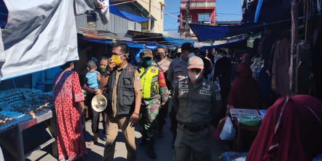 Makassar-Dalam rangka memberikan edukasi dan himbauan penerapan protokol kesehatan covid-19, Personil Posko Covid-19 terpadu Kec. Makassar melaksanakan menyambangi beberapa pasar yang berada diwilayah kec. Makassar. Senin (20/07/2020)