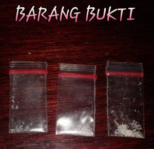 Barang bukti yang diamankan polisi berupa 2 saset berisikan sabu, 1 saset sabu sisa pakai, 2 buah pirex, 3 buah korek gas, 2 buah sendok pipet, 2 buah sumbu dan 8 buah saset kosong.