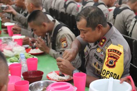 Pada saat pelaksanaan makan bersama tersebut tidak ada pembeda menu makanan antara orang nomor satu di Polda Sulsel dan Polda Sulbar dengan Siswa SPN Batua yang sedang melaksanakan pendidikan pembentukan Bintara Polri T.A 2018.