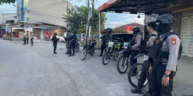 Puluhan personil dari tim penikam sat samapta Polrestabes Makassar bersama personil Dit Samapta Polda Sulsel dan personil Brimob serta TNI diturunkan melakukan patroli memantau adanya balap liar, Kamis (07/04/2022) subuh.