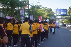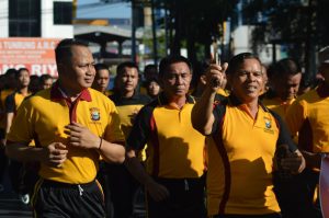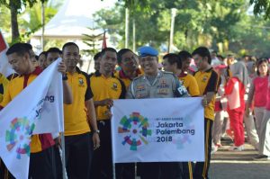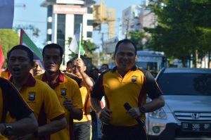 Berbeda dengan olahraga sebelumnya yang diadakan setiap hari jumat, olahraga kali ini bertemakan “Runners Tabes Makassar” dengan menggelorakan Asian Games Tahun 2018 para personil bersama Bhayangkari cabang tabes Makassar berlari sambil membawa bendera Negara peserta Asian Games.