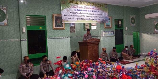 Peringatan Maulid Nabi yang digelar mengusung tema Dengan Meneladani Akhlak dan Kepemimpinan Nabi Besar Muhammad SAW Kita Wujudkan Polri yang PRESISI (Prediktif, Responsibilitas dan Transparansi Berkeadilan).