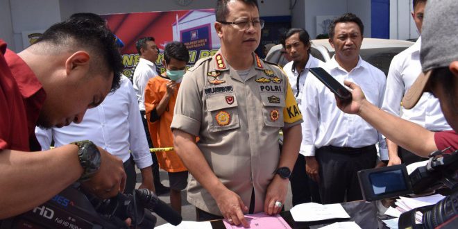Kapolrestabes Makassar Kombes Pol. Wahyu Dwi Ariwibowo, SIK didampingi Kasat Reskrim AKBP. Indratmoko, SIK dalam release mengungkapkan modus pelaku awalnya rental mobil.
