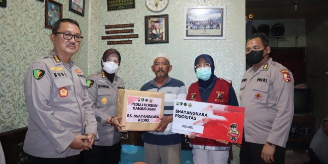 “Selasa (10/10) kemarin, rekan-rekan Polda Jatim dan jajarannya di Kediri, selain memberikan tali asih juga membagikan kartu Bhayangkara Prioritas. Kartu itu dapat digunakan keluarga korban Tragedi Kanjuruhan saat ingin mengakses layanan kesehatan gratis di 10 RS Bhayangkara Polda Jatim,” terang Dedi.
