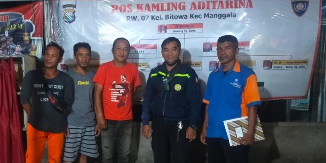 Makassar, Polsek Manggala_ Guna meningkatkan keamanan lingkungan Melalui Personil Bhabinkamtibmas diwilayah binaanya Aipda Arham, SH Aktif sambangi Warga yang melaksanakan Pos Kamling selain giat pemantauan ia juga memberikan motivasi kepada warganya agar berpartisipasi aktif mendukung terciptanya kamtibmas, Pos Kamling Aditarina Jln. Ujung Bori RT 02 RW 07 Kel. Bitowa Kec. Manggala, Selasa (03/01/23) Dini hari.
