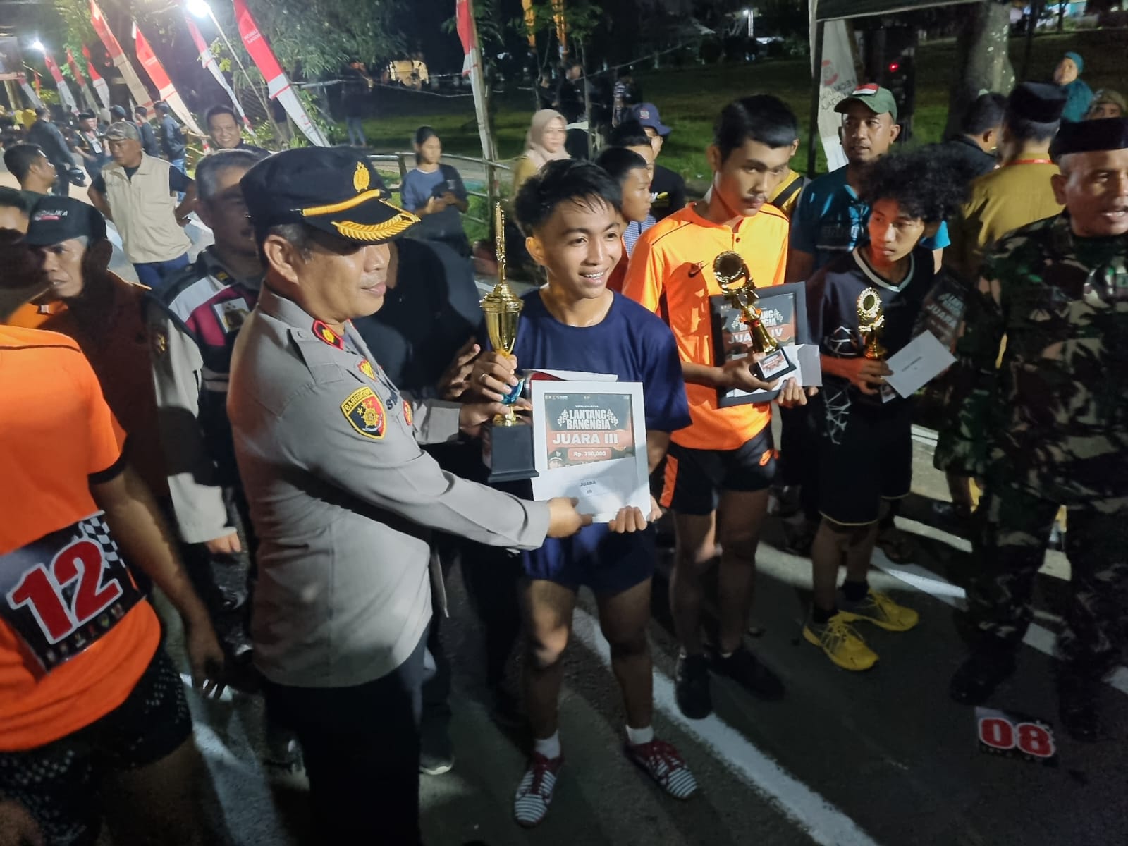 Makassar _Polsek Manggala, Personil Polsek Manggala Bersama Unsur Tripika dan 3 Pilar Amankan Jalannya Giat Run Race Lantang Bangia Babak Kualifikasi Zona Manggala bertempat di Lapangan Perumahan Dosen Unhas Jln. Geologi Kel. Biring Romang, Rabu (12/04/23) Malam.