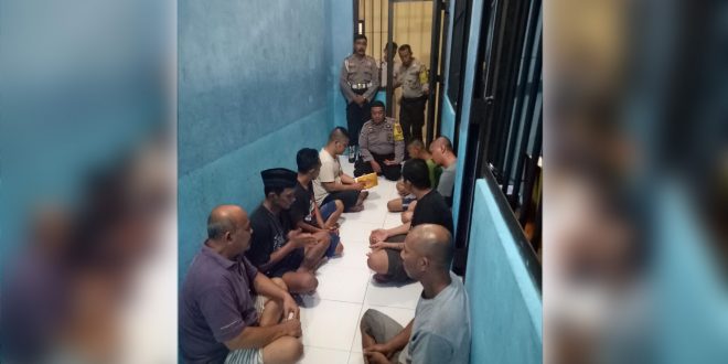 Polrestabesmakassar.com – Bhabinkamtibmas memberikan bimbingan rohani kepada para tahanan di Polsek Manggala, Rabu (4/12/2019).