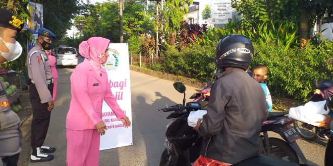Ketua Bhayangkari Ranting Manggala, Ny Any Supriady melalui wakil ketua Ny.Ariani Wahid mengatakan, pembagian nasi kotak tersebut merupakan bentuk kepedulian terhadap pengguna jalan yang masih beraktivitas menjelang buka puasa.