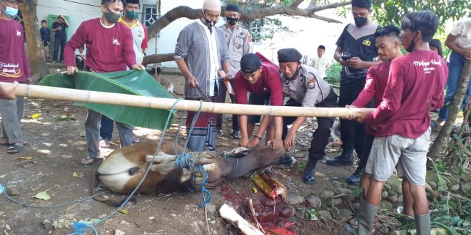 “Terima kasih kepada semua anggota yang berpartisipasi sehingga tahun ini kita bisa menyembelih 7 ekor sapi” ujar Kapolsek.