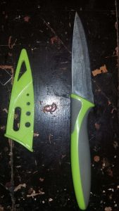 Selain mengamankan FA polisi juga mengamankan barang bukti berupa satu bilah pisau dapur dengan sarungnya warna hijau mudah.