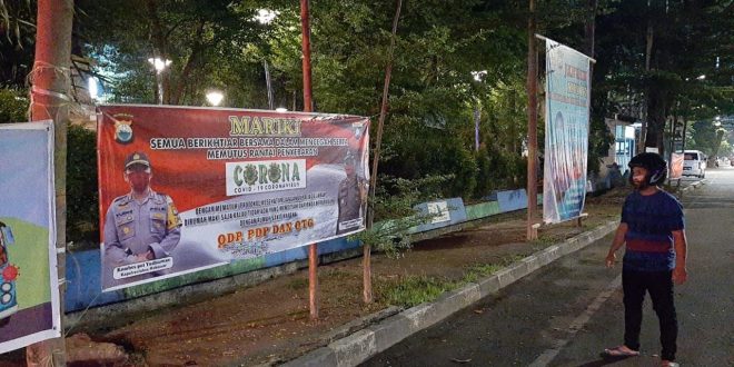 Makassar – Polsek Mariso Polrestabes Makassar melalui personel Sium Bripka Raynaldi dkk melaksanakan pemasangan spanduk himbauan pencegahan penularan virus corona di wilayah Kec. Mariso, Sabtu sore (06/06/2020).
