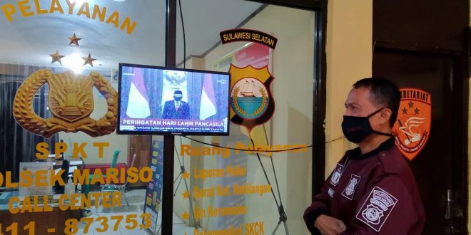 Menyikapi akan hal itu, pada senin pagi (1/6/2020), Personil Polsek Mariso mengadakan nonton bareng dengan tetap memperhatikan protokol dan adapula nonton secara online di ruangan masing-masing.