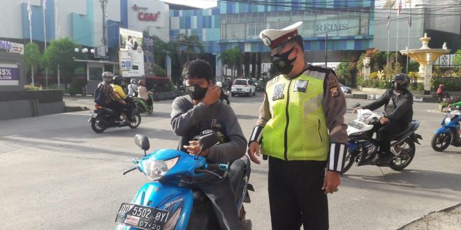 Terlihat pada pagi hari unit lantas polsek panakkukang yang melaksanakan pengaturan lalu lintas di jl. Pengayoman Kec. Panakkukang memberikan himbauan kepada pengendara yang tidak menggunakan masker agar menggunakan maskernya.