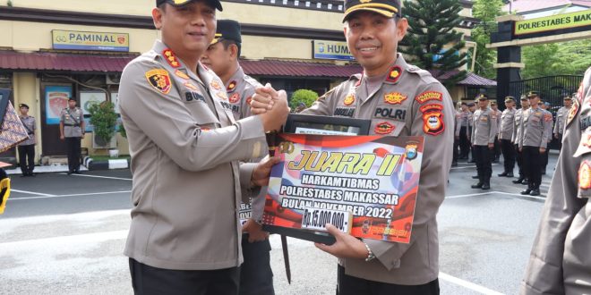 Makassar – Dalam rangka memelihara keamanan dan ketertiban masyarakat (Harkamtibmas), Kepolisian Sektor Tallo meraih sebagai Satuan Kewilayahan terbaik ke-2, Periode bulan November 2022