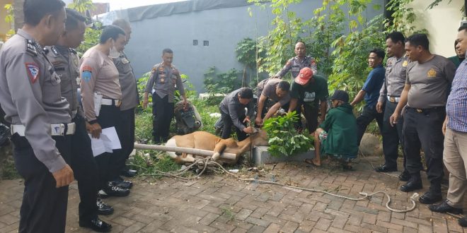 Makassar- Polsek Tamalate Polrestabes Makassar melakukan pemotongan hewan qurban untuk dibagikan kepada warga sekitar Mapolsek Tamalate Kegiatan dilakukan di halaman Mako Polsek Jalan Danau Metro Tanjung Bunga Kota Makassar Kel Maccini Sombala Senin (11/07/2022)