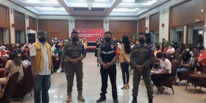 Makassar – Ratusan warga dalam wilayah Kecamatan Ujung Pandang, hadiri vaksinasi Covid-19 gratis di Hotel MGH Jalan Pasar Ikan No. 52, Kota Makassar, Rabu (14/7/21)