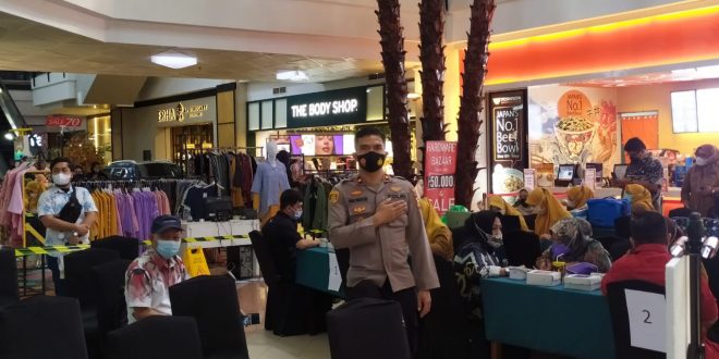 MAKASSAR-Polsek Mamajang beserta jajaran menggelar vaksinasi massal di Mall Ratu Indah,Jalan Dr. Ratulangi,Kota Makassar.Senin(5/7/2021).