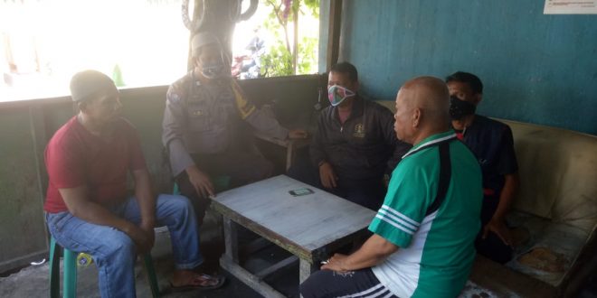 Melalui giat sambang, Kamis pagi Aiptu Hanafi memberikan himbauan dan edukasi protokol kesehatan kepada warga yang ditemuinya. (18/06/2020)