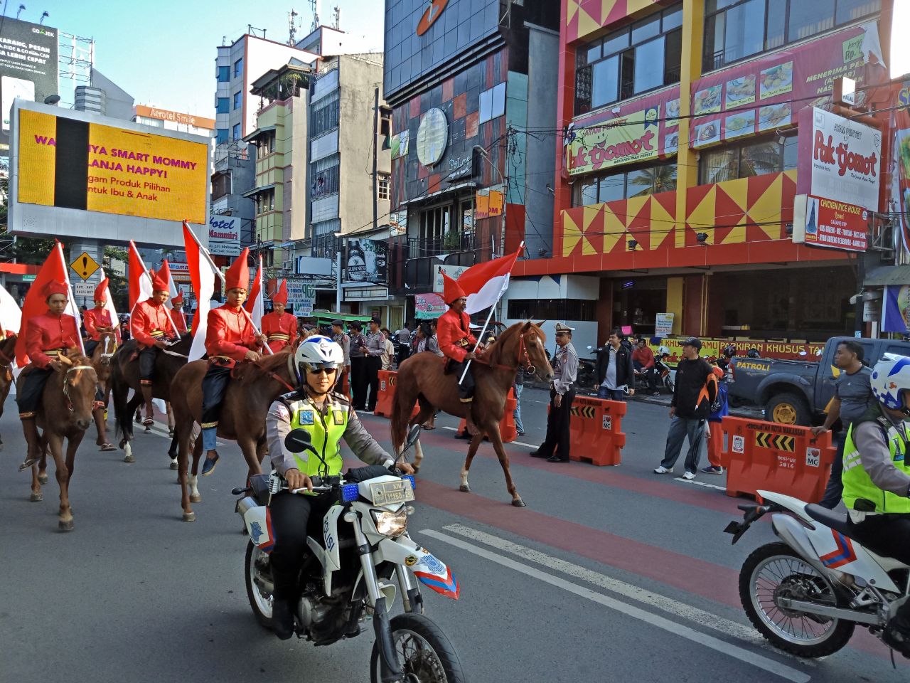 Kapolda Sulsel Irjen Pol Drs. Umar Septono, S.H, M.H didampingi Kapolrestabes Makassar Kombes Pol Anwar Effendi, S,.Ik, S.H,M.H mengawal jalannya Jalan Santai dalam rangka Deklarasi Kampanye Damai Pilkada Serentak 2018, Minggu (18/02/2018).