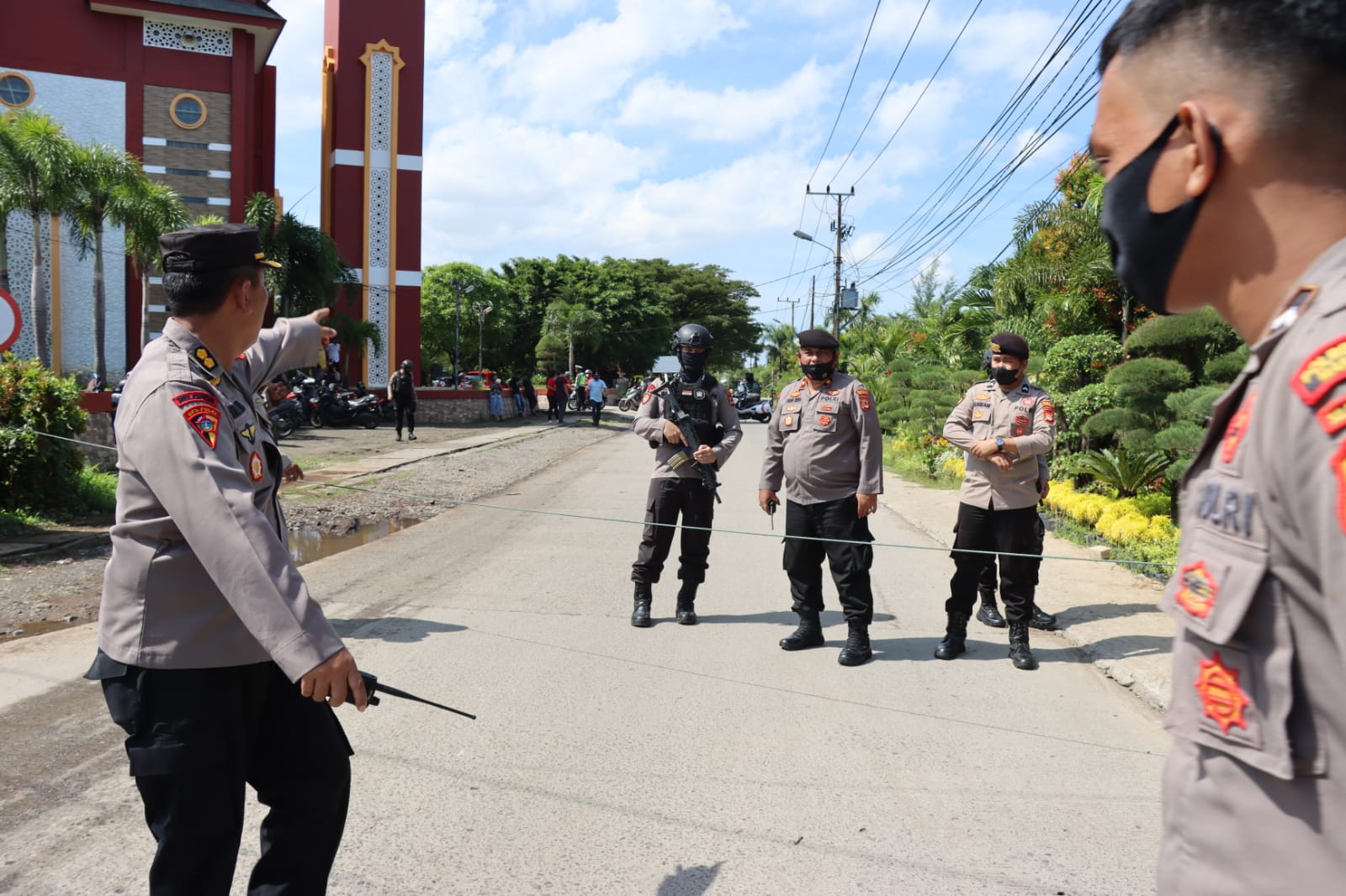 Terlihat sejumlah personil Polrestabes Makassar mengamankan jalannya rekontruksi di lokasi dengan memasang tali pembatas dipimpin langsung oleh Kabag Ops Polrestabes Makassar AKBP Darminto.