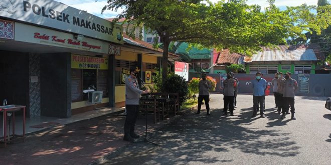 Apel pagi yang dihadiri oleh seluruh personil Polsek Makassar diawali dengan doa bersama, dengan tetap menerapkan protokol kesehatan seperti memakai masker dan menjaga jarak.