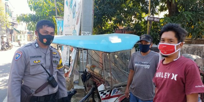 “Pake Ki Masker ta, Cuci tangan dan tetap jaga jarak,” Ucap Bripka Syamsuddin.