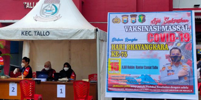 Makassar. Dalam rangka menyambut HUT Bhayangkara yang ke 75, Kepolisian Resort Kota Besar (Polrestabes) Makassar, mengadakan vaksin massal untuk masyarakat umum, keluarga Polri dan Polri di beberapa lokasi di Makassar. Pelaksanaan vaksin berlangsung dari tanggal 14 s.d 24 Juni 2021 mendatang.