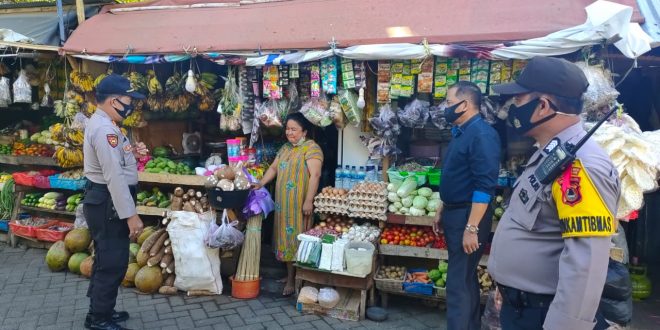 Nampak terpantau kamera awak media, puluhan personil Polsek Tamalanrea melakukan pendisiplinan masyarakat di pasar tradisional BTP Blok M, Tamalanrea Makassar, Selasa (15/09/2020).