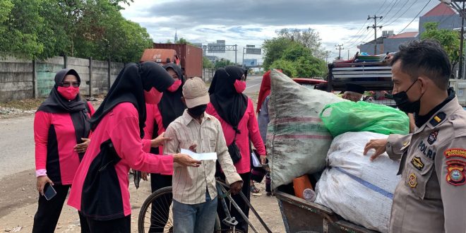 Makassar – Jajaran Pengurus Bhayangkari Cabang Tabes Makassar dan Ranting Tallo memanfaatkan momen Jumat Berkah dengan mengelar bakti sosial membagi sedekah kepada warga masyarakat yang kurang mampu.