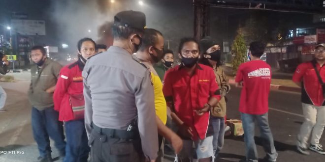 Makassar – Pasca pengesahan UU Omnibus Law oleh DPR RI, puluhan massa dari Serikat Buruh FSPBI menggelar aksi unjuk rasa di Jalan Perintis Kemerdekaan, depan toko Abdi Agung Tamalanrea Makassar, Senin (5/10/2020) malam.