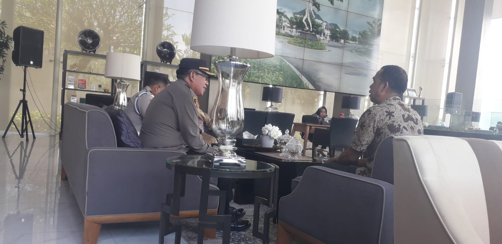 Terpantau kamera awak media, Kapolsek Tamalanrea Kompol Andi Alimuddin, SH, didampingi Kanit Propam Ipda H. Abd Haris dan Paurmin Reskrim Ipda Jamaluddin bersilaturahmi dengan Manajemen PT Citra Land Tallasa ciry, Kila Toding