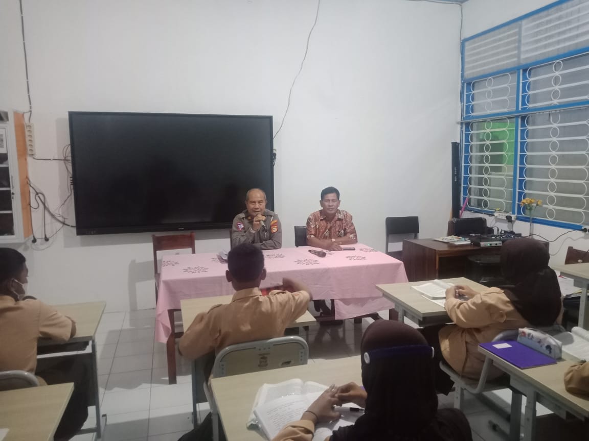 Makassar, Polsek Manggala_Dalam Rangka Sosialisasi Oprasi Keselamatan Berlalulintas 2023, guna mewujudkan Kamsebtibcar Lantas ( keamanan, keselamatan ketertiban, dan kelancaran lalu lintas ) Kanit lantas Polsek Manggala Manggala AKP Iwan Gunawan didampingi Ipda Sunardi, kembali memberikan edukasi tertib berlalu lintas kepada pelajar di SMPN 17 Makassar Jln. Tamangapa Raya V No. 5 Kel. Tamangapa Kec. Manggala, Sabtu (11/02/23) Pagi.