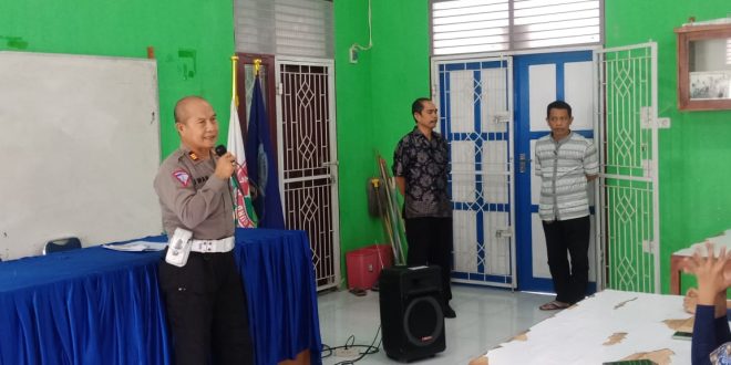Pada Sosialisasi tersebut, Panit 1 Lantas Ipda Sunardi juga memberikan edukasi berupa Pemakaian Helm dan tata cara berlalu lintas