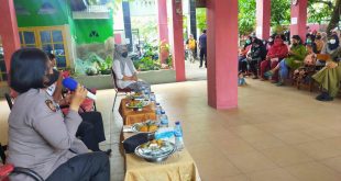 Makassar – Bhayangkara Pembina Keamanan dan Ketertiban Masyarakat (Bhabinkamtibmas) Kelurahan Lajangiru Kecamatan Ujung Pandang Kota Makassar, Aiptu Muh. Tajuddin, melakukan pendampingan terhadap warganya yang masuk kategori lansia (lanjut usia), saat mengikuti kegiatan vaksinasi lansia di SD Islam Yayasan Athirah, Jl. Kajaolalido Kota Makassar. Aiptu Tajuddin mengatakan kegiatan, tersebut merupakan upaya TNI-Polri dalam mendukung program vaksinasi pemerintah untuk segera wujudkan ‘Herd …