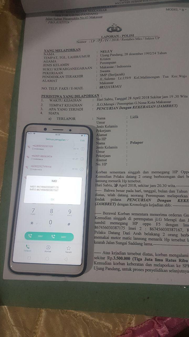 Kemudian perempuan IR memberi keterangan bahwa HP tersebut di peroleh oleh lelaki DE yang tinggal di Jalan Sitanga Makassar.