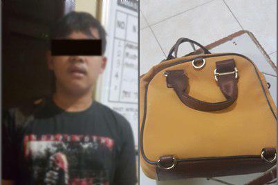 Pelaku melakukan aksinya menggunakan sepeda motor dan memepet motor korban lalu merampas tasnya. Saat melarikan diri kedua pelaku terjatuh akibat menabrak mobil namun lelaki FT berhasil melarikan diri.