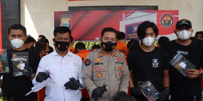 “Tarsangka yang diamankan sementara dalam penaganan Polsek Tamalate, lima orang masih dalam pengejaran,” ucap AKP Lando.