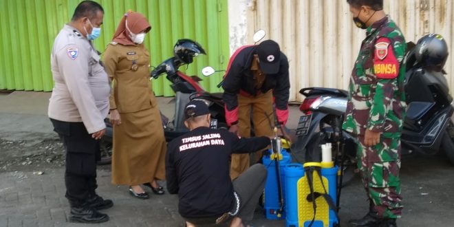 Makassar – Tiga pilar Kelurahan Daya dalam memerangi penyebaran virus Covid 19 di wilayah kelurahan Daya rutin melakukan edukasi protokol kesehatan dengan melakukan penyemprotan disinfektan di tempat keramaian, panti pijat, Cafe, warkop dan Pasar – pasar yang ada di wilayah kelurahan Daya. Selasa (02/03/2021).