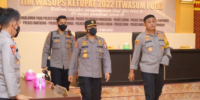 Makassar – Tim Wasops Ketupat 2022 Itwasum Polri berkunjung di Polrestabes Makassar. Kedatangan tim disambut langsung oleh Kapolrestabes Makassar Kombes Pol Budhi Haryanto, SIK, MH, Senin (9/5/2022).