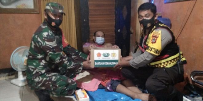 Seperti yang nampak terpantau kamera awak media, saat Bhabinkamtibmas Tamalanrea Jaya Polsek Tamalanrea Polrestabes Makassar, Bripka Syamsuddin dan Babinsa Serma Albert menyalurkan bantuan sembako kepada warga binaan yang sedang sakit lumpuh, Iswan warga Jl. Bung Lr.3 RT,001 RW, 001 Tamalanrea Makassar, Minggu (12/7/2020).