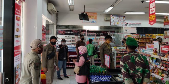Kegiatan operasi yustisi tripika Makassar kali imi menyasar pusat perbelanjaan seperti toko Indomaret dan toko Alfamidi jalan Sungai Saddang Makassar.