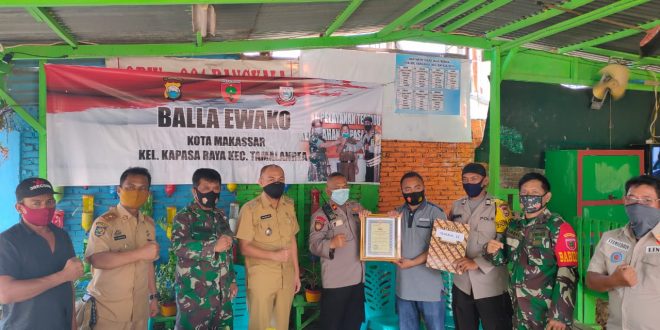 Makassar – Balla Ewako Kelurahan Kapasa Raya yang terletak di Jalan Kapasa Raya Tamalanrea Makassar mendapat kunjungan dari Tripika Tamalanrea, Camat Kaharuddin Bhakti, Danramil Mayor (Kav) Salahuddin Basir dan Kapolsek Tamalanrea Polrestabes Makassar Kompol Muhammad Aris, Selasa (21/07/2020).