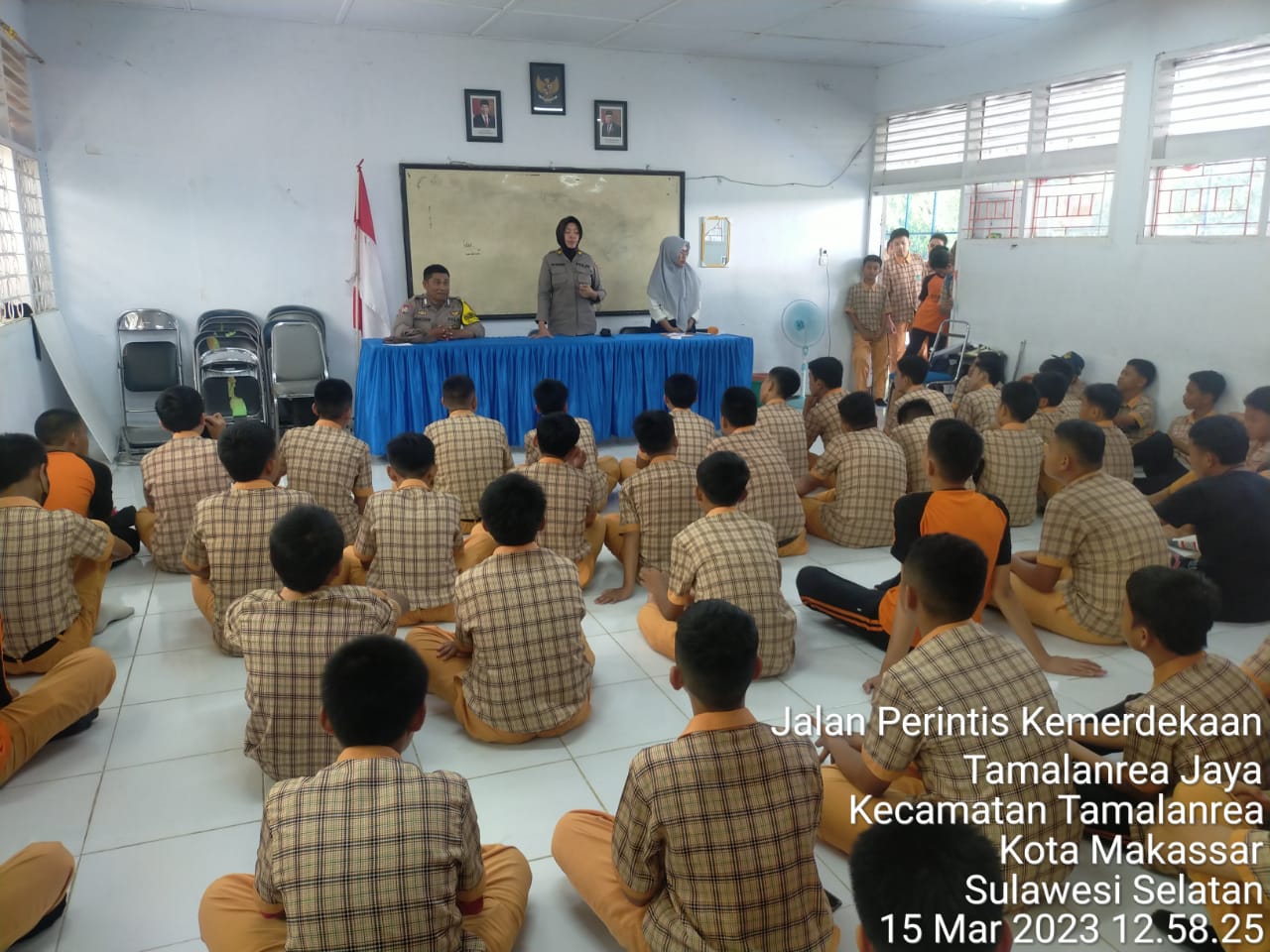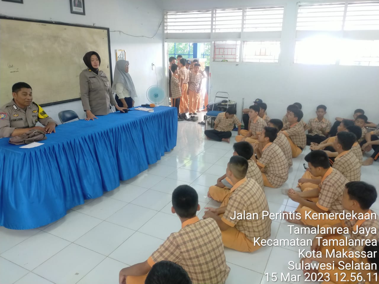 Makassar, Sejumlah upaya terus dilakukan Polsek Tamalanrea untuk Menjaga situasi Kamtibmas wilkum Polsek Tamalanrea tetap aman dan kondusif, salah satunya dengan melakukan sosialisasi Harkamtibmas di SMP Negeri 12 Makassar, Kompleks Perdos Unhas Tamalanrea, Rabu(15/5/2023)