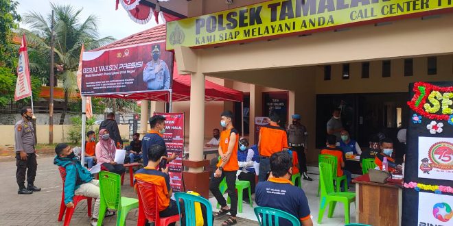 Makassar – Dalam rangka Mewujudkan program satu hari sejuta vaksinasi sehingga tercipta Herd Immunity atau kekebalan kelompok terhadap virus Covid 19, Polsek Tamalanrea mendirikan gerai vaksin presisi.