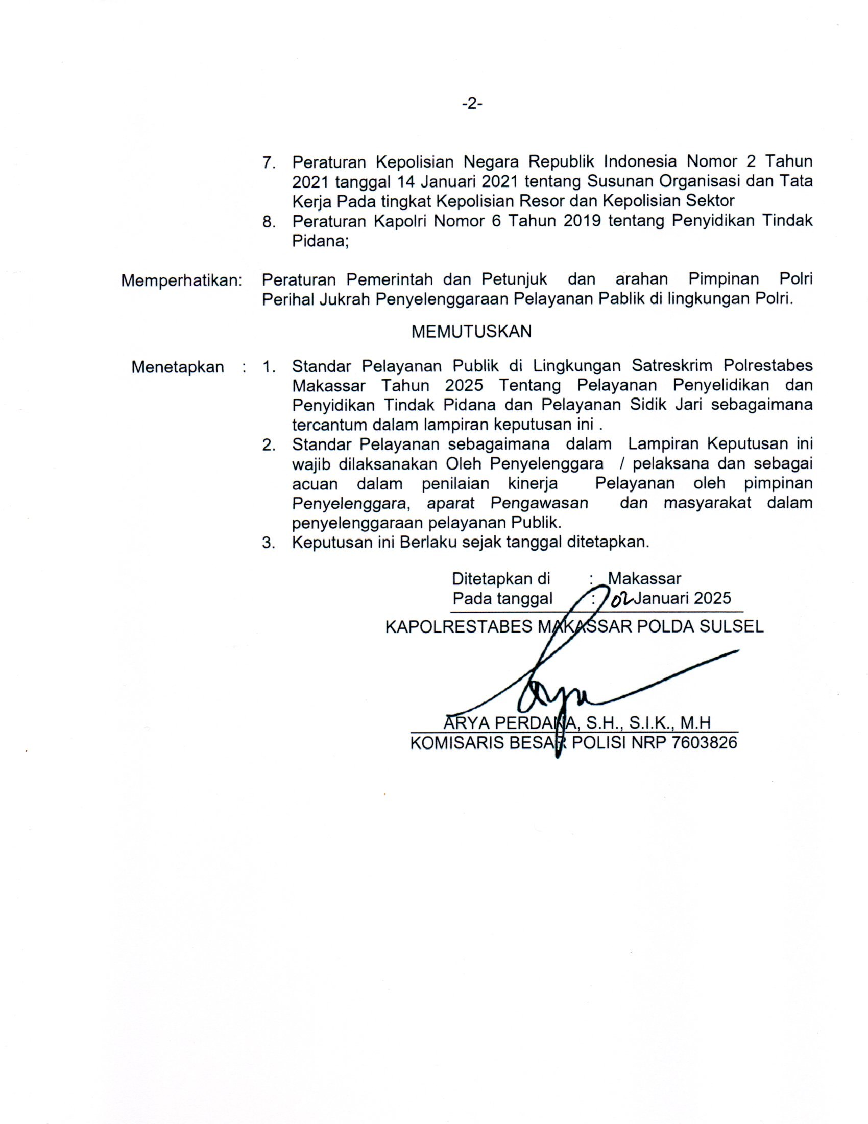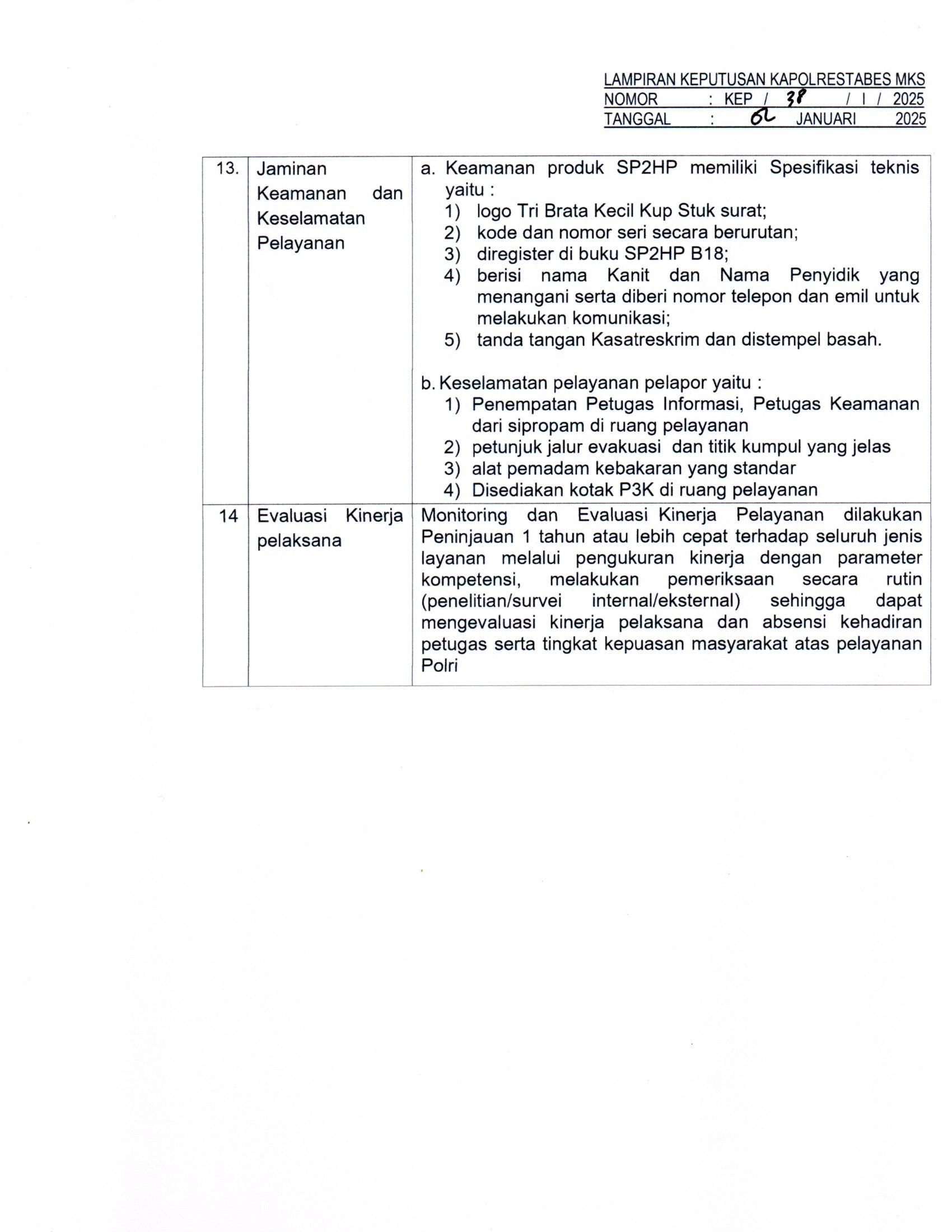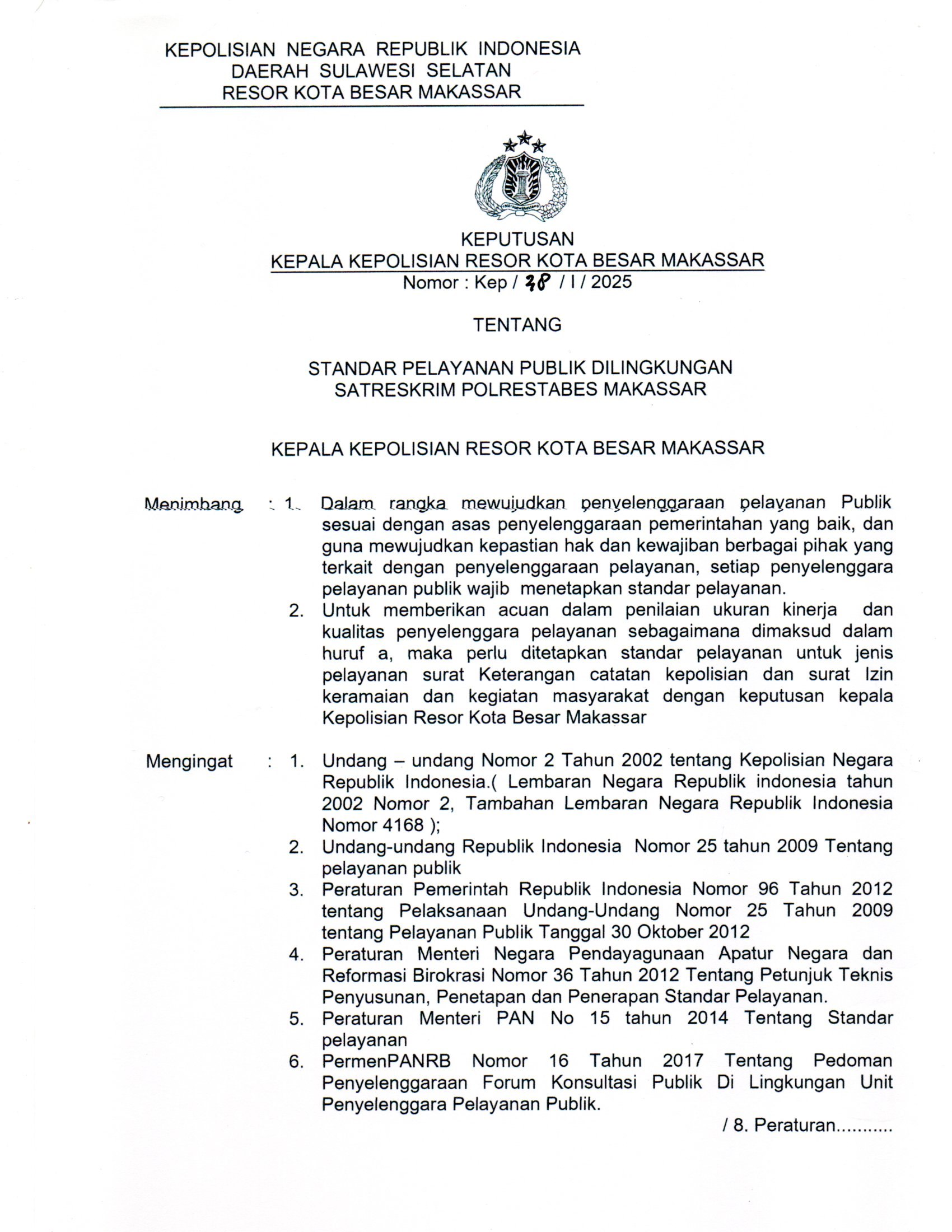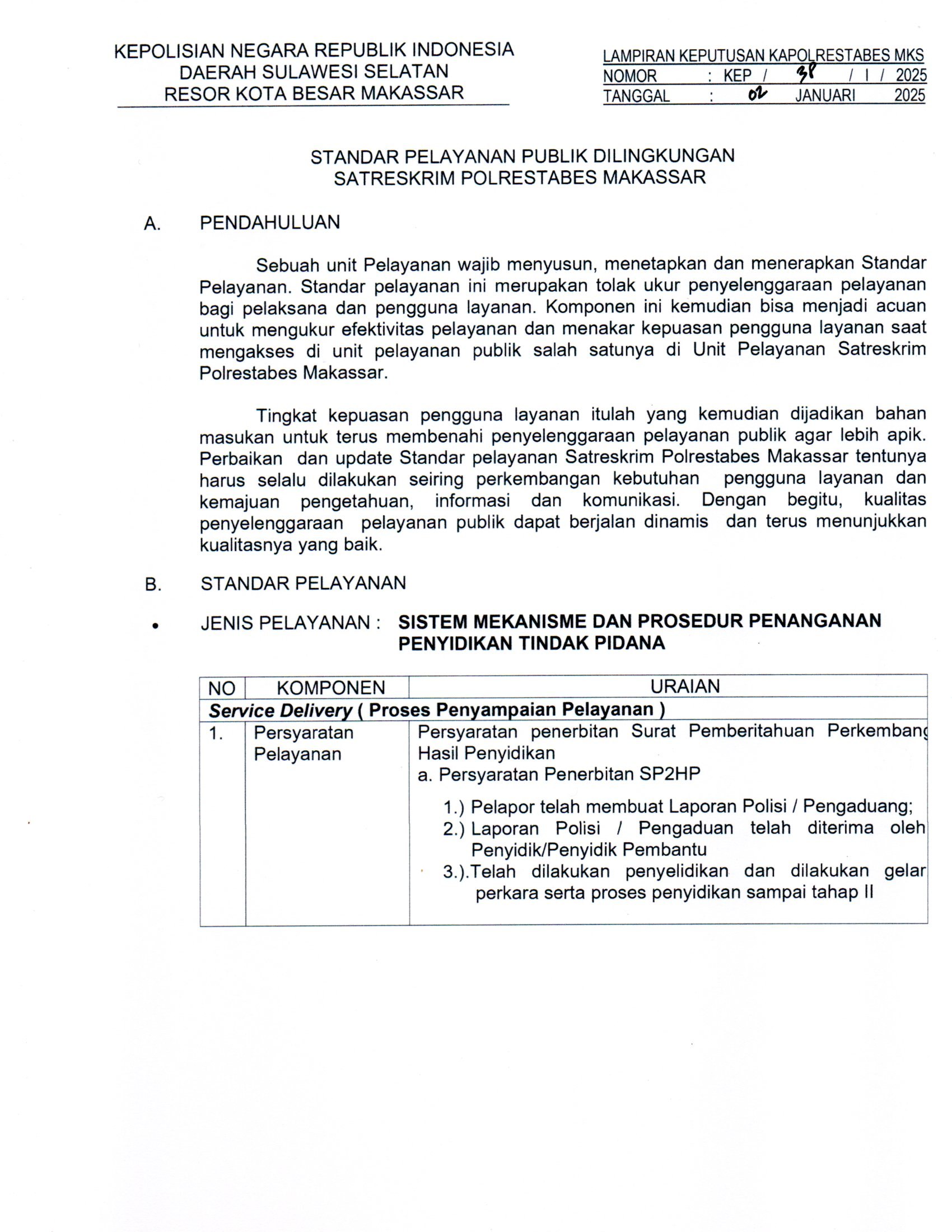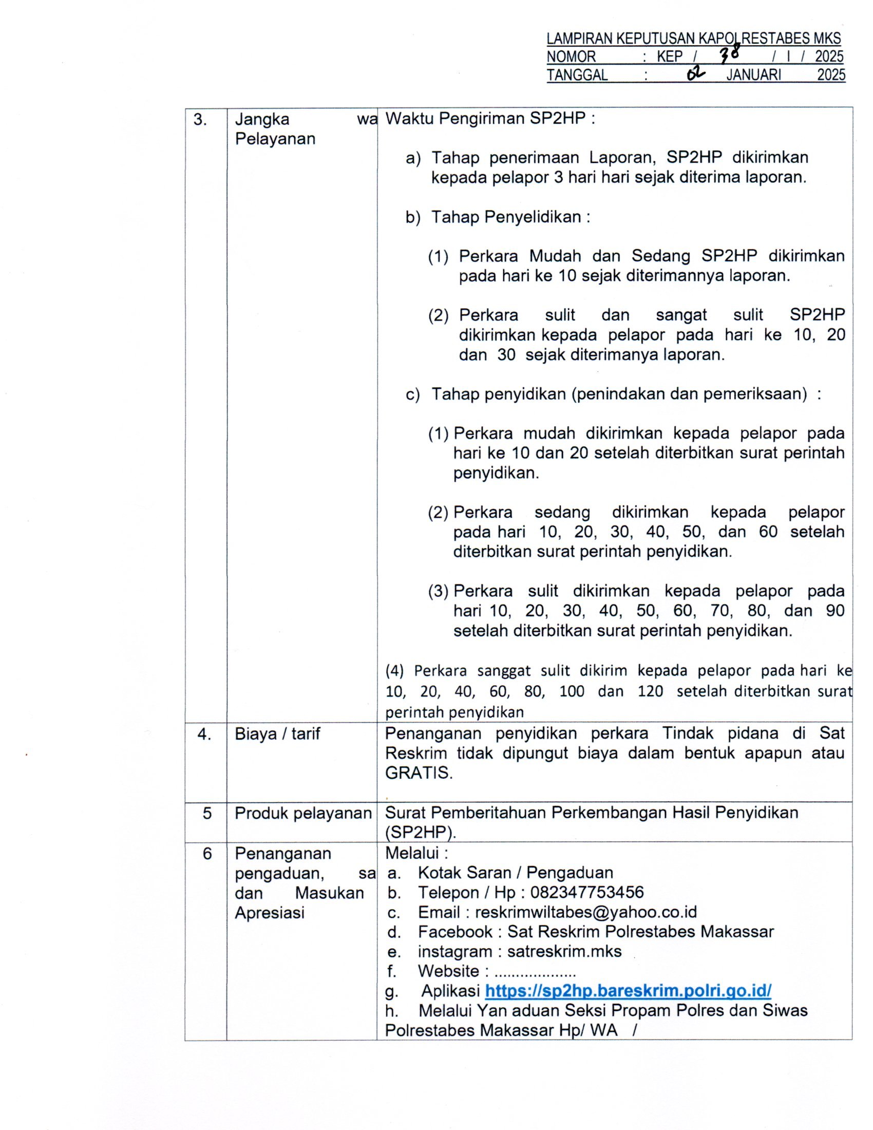 Satuan Reskrim Video Pelayanan Satuan Reskrim Maklumat Standar Pelayanan Sat Reskrim STANDAR PELAYANAN SAT RESKRIM POLRESTABES MAKASSAR