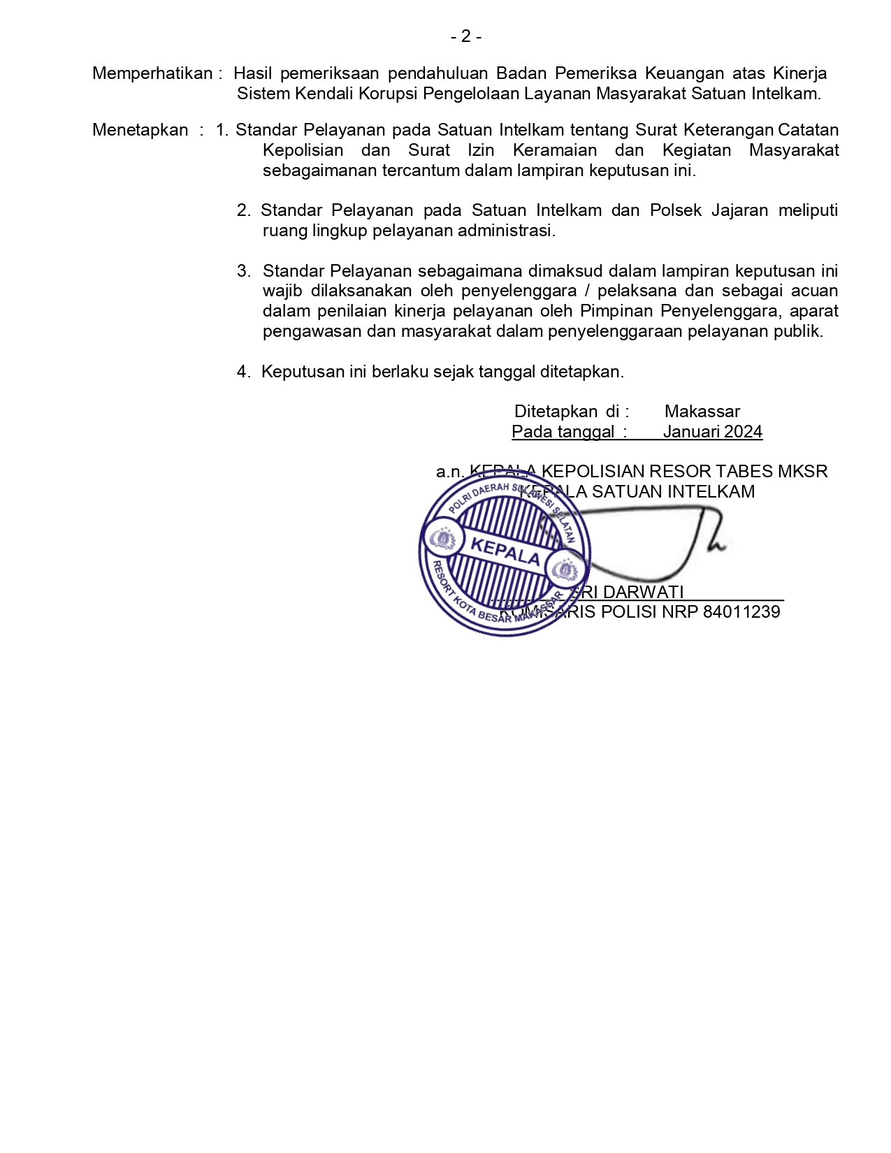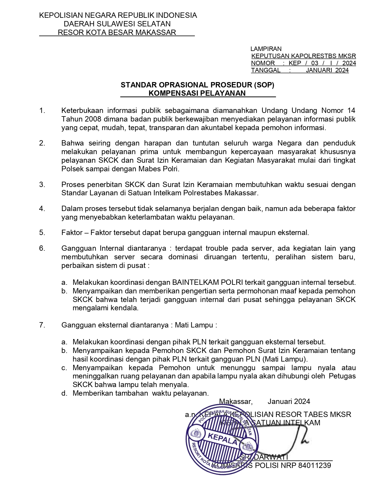 SK DAN SOP KONPENSASI SKCK POLRESTABES MAKASSAR
